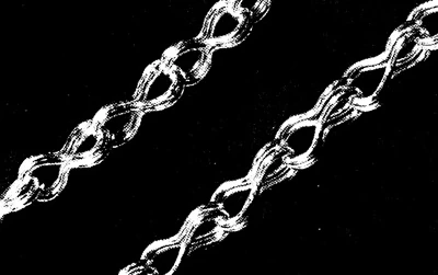 Основная цепь с перпендикулярно расположенными сжатыми звеньями является типом цепи, которая часто встречалась в древности. Это цепь быстрее и легче в изготовлении из всех разновидностей цепей и является типом цепи, которая вряд ли вызовет серьезные проблемы у изготовителя цепей. Обычно трудности обусловлены тем, что звенья недостаточно сплавлены, неправильно навита или разрезана проволока, что приводит к несоответствию в размерах звеньев.