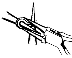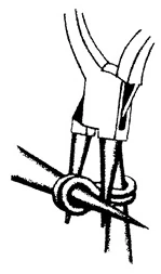 4. При помощи круглогубцев или большого пинцета сожмите проволоку, расположенную горизонтально между двумя инструментами.